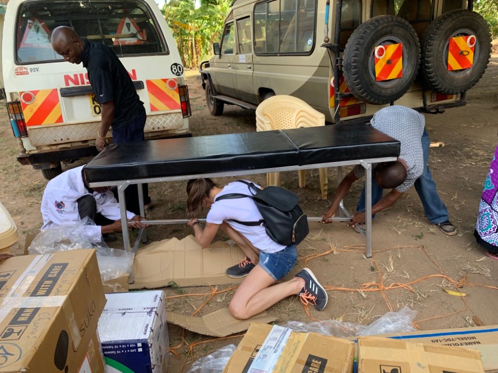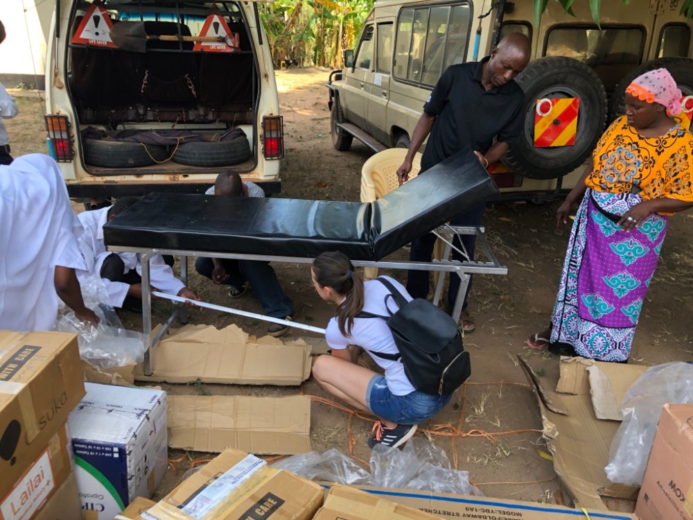 Abbiamo procurato: Barelle, palloni ambu, stetoscopi, misuratori di pressione, saturimetro, strumenti che ci sono stati donati dal dott. Mollea e dai suoi colleghi, vitamine, camici, medicamenti di tutti tipi. Siamo arrivate dopo un percorso polveroso, con i fuoristrada stracarichi e abbiamo scaricato tutto sotto un albero.